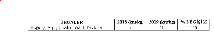 24 Ekim 2019 tarih ve 30928 Sayılı Resmi Gazete'de yayımlanan kararda, dekar başına tahıl ürünleri için 27 lira, bakliyatlar için 26 lira, ayçiçeği için 30 lira, patates için 31 lira, zeytin için 19 lira, zeytinyağı için ton başı 80 lira ve dane mısır için 29 lira destek verilecek. Şartları sağlayan üreticilere her büyükbaş için 350 ile 600 lira arası ödeme yapılacak.