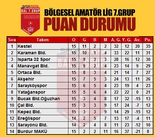 Bölgesel Amatör Lig (BAL) 7. grupta bu hafta sonu 15. hafta karşılaşmaları oynandı.