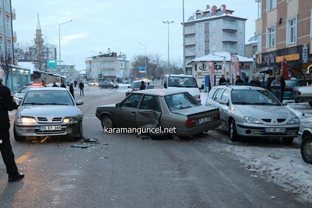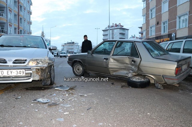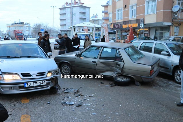 Edinilen bilgiye göre, Musa B. yönetimindeki 70 EY 349 plakalı otomobil ile Ali K. yönetimindeki 70 EU 557 plakalı otomobil, cadde üzerinde çarpıştı. Çarpışmanın şiddetiyle 70 EU 557 plakalı otomobil, park halinde bulunan 70 HE 353 plakalı otomobile çarptı.