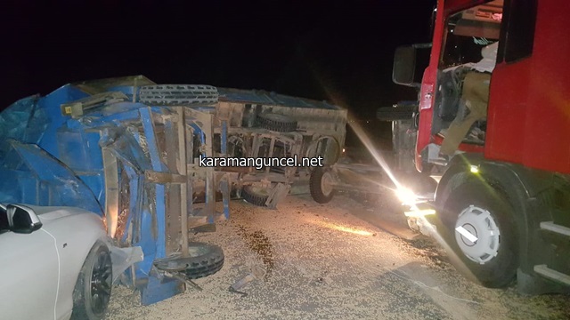 Alınan son bilgilere göre Karaman- Ayrancı yolu 30. kilometresinde tır ve iki otomobilin karışmış olduğu kazada yaralıların olduğu öğrenildi. Kaza nedeniyle Karaman-Ayrancı yolu trafiğe kapatıldı.
