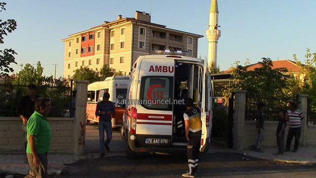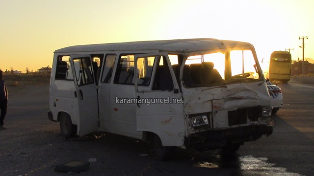 Alınan bilgiye göre, Abdullah Y. Yönetimindeki 70 M 0192 plakalı hat minibüsü ile Yusuf B. yönetimindeki 70 DE 856 plakalı tarım işçilerini taşıyan minibüs 2081. Sokak üzerinde çarpıştılar.
