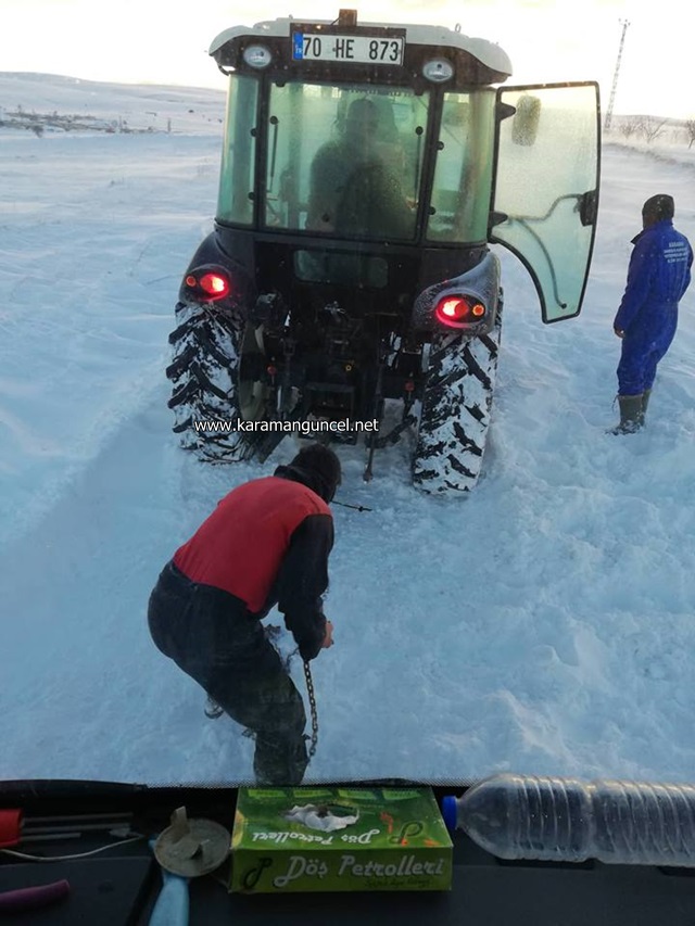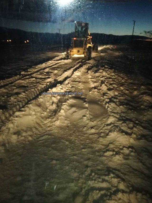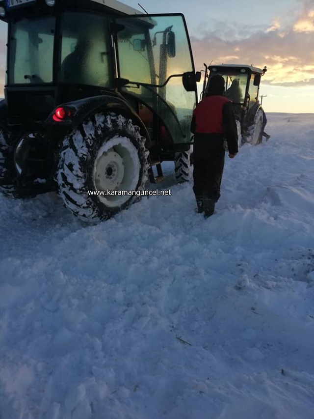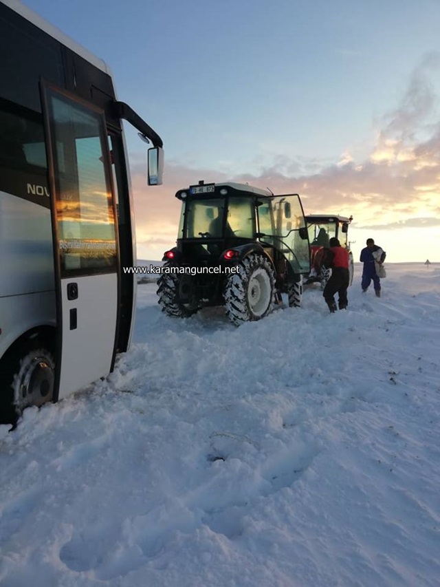 Karaman'ın Ayrancı ilçesinde, kar nedeniyle kapanan yolda mahsur kalan öğrenci servis minibüsü köy hizmetlerinin müdahalesiyle bulunduğu yerden kurtarıldı.