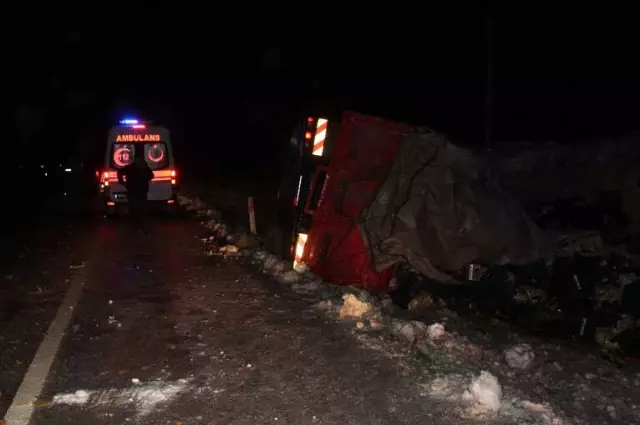 Kaza, saat 23.45 sıralarında Karaman-Konya Karayolunun 28 kilometresinde meydana geldi. Alınan bilgiye göre, Mersin'den yüklediği muzu, Konya'ya götürmekte olan Kenan B., yönetimindeki 33 L 6567 plakalı kamyon, soğuk hava nedeniyle kayganlaşan yolda sürücüsünün direksiyon hakimiyetini kaybetmesi sonucu yol kenarına devrildi. Kazada yaralanan sürücü, çağrılan ambulansla Karaman Devlet Hastanesine kaldırıldı. Tedavi altına alınan sürücünün sağlık durumunun iyi olduğu öğrenildi.