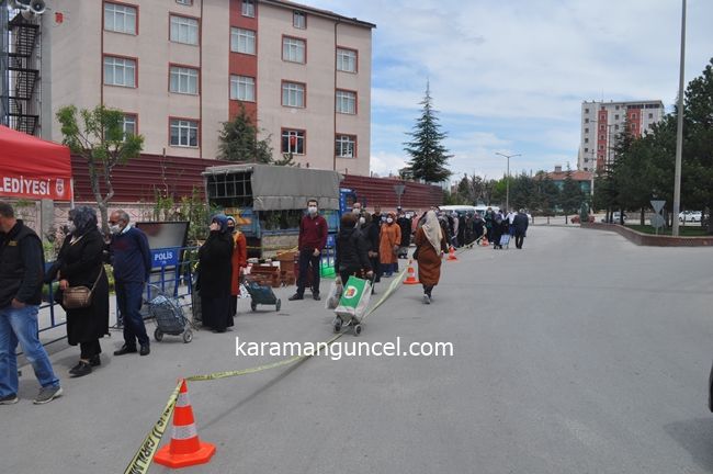 Karaman'da korona virüse karşı alınan tedbirler kapsamında pazar yerlerindeki önlemlerden dolayı girişlerde uzun kuyruklar oluşuyor. Pazarcı esnafı ise marketlerde tedbirlerin daha az olduğundan vatandaşların kuyrukta sıra beklememek için marketleri tercih ettiğini dile getiriyor.