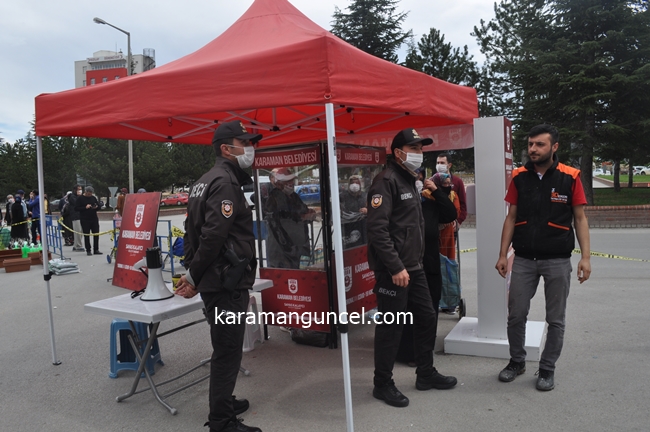 Korona virüse karşı alınan tedbirler kapsamında pazarlarda da denetimler sıkı. Salgının yayılmasını önlemek amacıyla vatandaşların sıklıkla ve yoğunlukla kullandığı toplu alanlardan olan pazar yerlerine herkes sırayla alınıyor. Kuyrukta sıra bekleyen vatandaşlar tek tek ateşleri ölçülerek ve sosyal mesafe kuralına uymaları konusunda uyarılar yapılarak alana alınıyor. Toplam 400 tezgah bulunan pazar yerine, aynı anda en fazla 800 kişi alınabiliyor. Her tezgaha 2 kişi düşecek şekilde uygulanan tedbir sayesinde virüsün gücünü aldığı temas ortamı en az seviyelere indirilmeye çalışıyor.