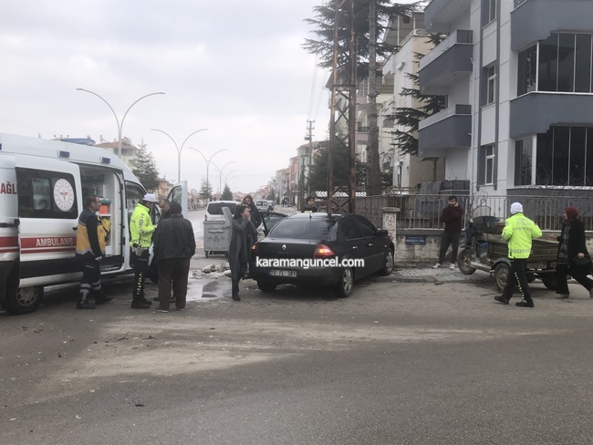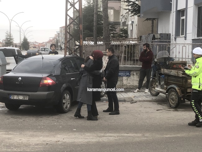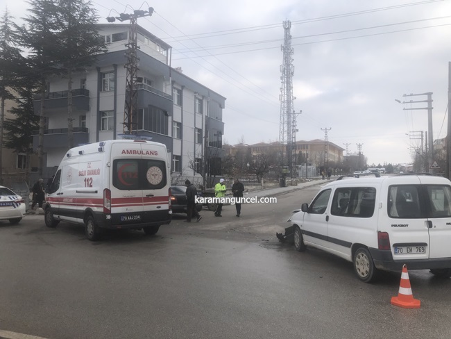 Alınan bilgiye göre, Alpaslan Türkeş Bulvarı üzerinde Sena U. yönetimindeki 70 FL 381 plakalı otomobil ile Muharrem B. yönetimindeki 70 EH 769 plakalı hafif ticari araç kavşakta dikkatsizlik sonucu çarpıştılar.